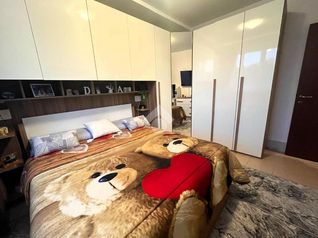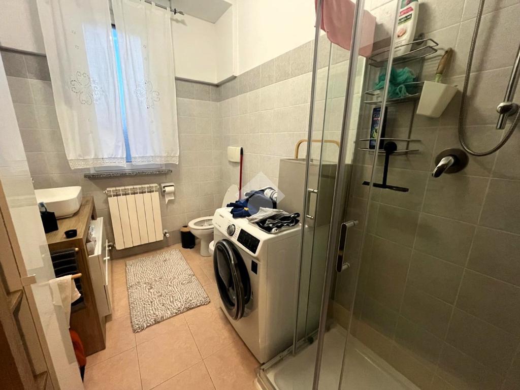 All'interno si suddivide in ampio ingresso che accede direttamente al corridoio, da questi si raggiungono la camera matrimoniale, il servizio, con box doccia e lavanderia, e la zona giorno open space con angolo cottura e balcone.