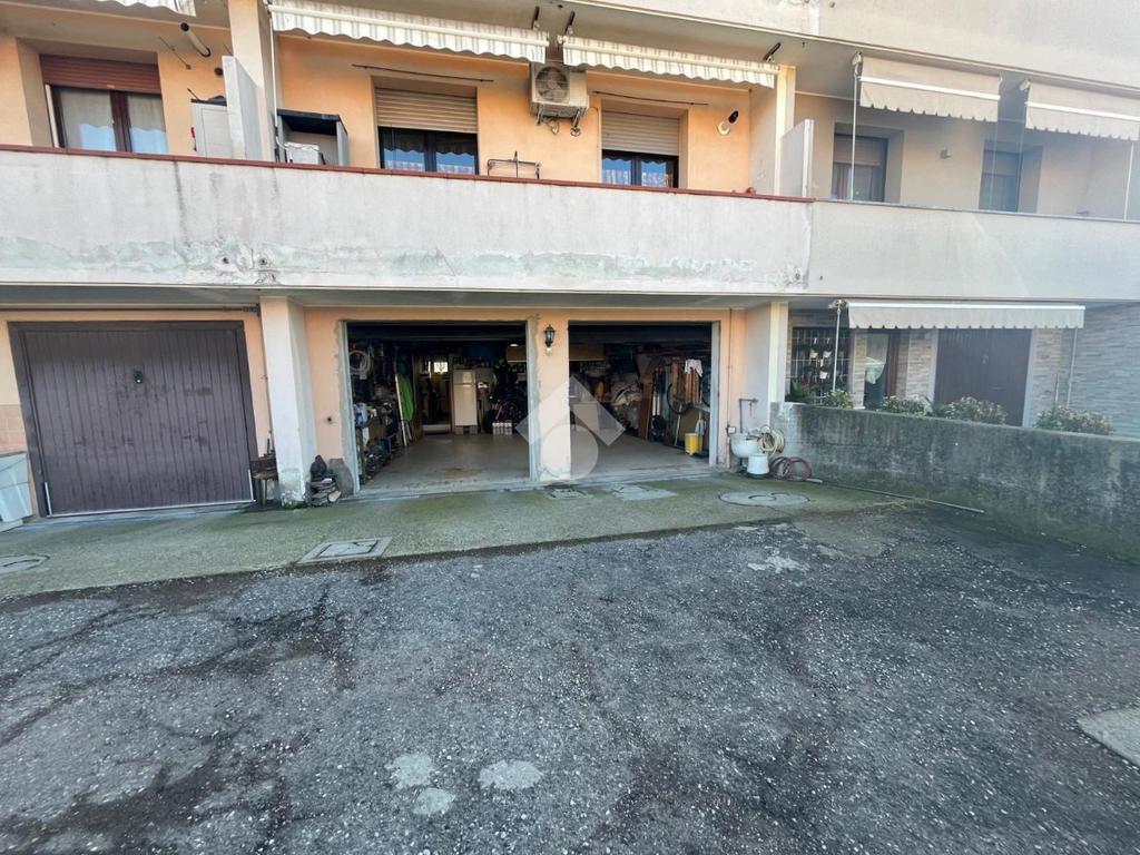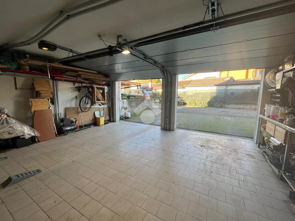 L'autorimessa affaccia sull'area pertinenziale di proprietà posta sul retro dell'abitazione dove è possibile posteggiare altre due auto.