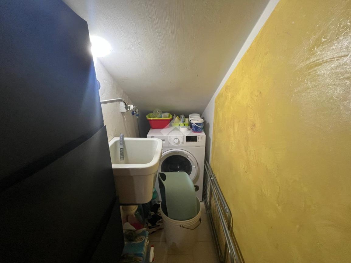Varcata la soglia dell'entrata, si incontra l'ampio locale cantina seminterrato che presenta anche un attacco per l'angolo lavanderia. Da questo ambiente si accede poi a un comodo ripostiglio/sottoscala, in cui è presente un altro attacco per la lavatrice, e anche alla doppia autorimessa con doppia basculante sezionale elettrica.