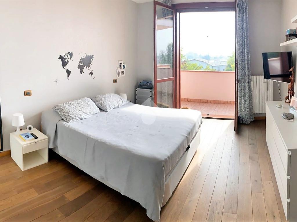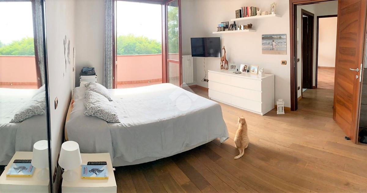 La zona notte si compone di camera matrimoniale, accessoriata di secondo balcone, e servizio con box doccia multifunzione.