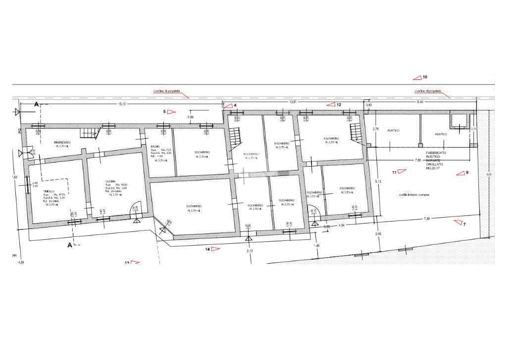 Disposta su due livelli interni, la soluzione necessita di totale ristrutturazione e si possono ricavare fino a quattro appartamenti.