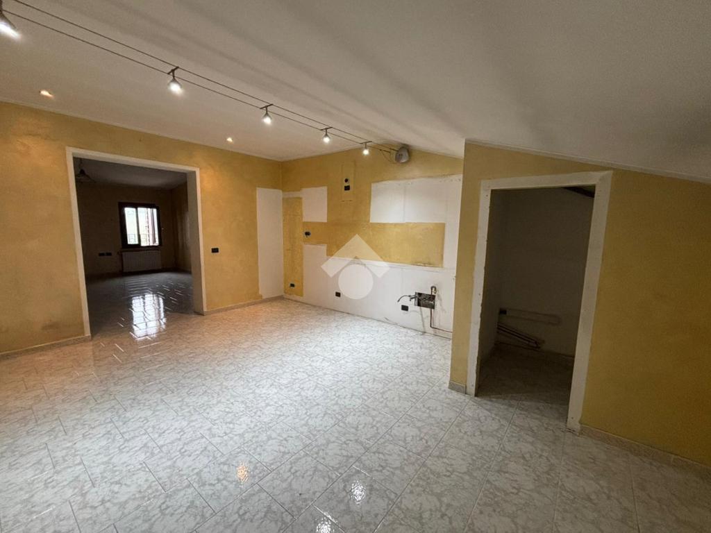 Percorrendo il vano scala, al piano ammezzato si accede ad un ampio vano sottotetto finestrato.