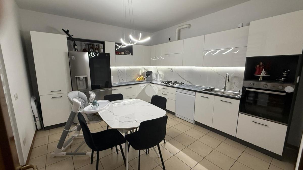 Al piano terra sono disposti l'ampio soggiorno, la cucina separata e abitabile, e il primo bagno con box doccia e lavanderia.