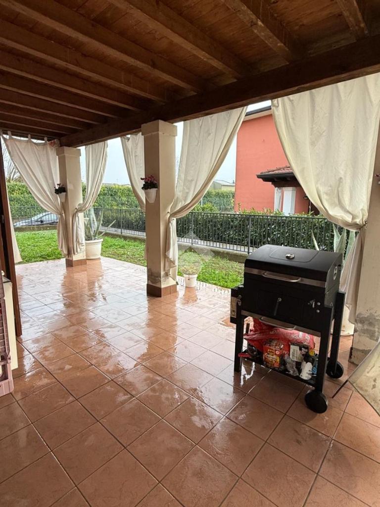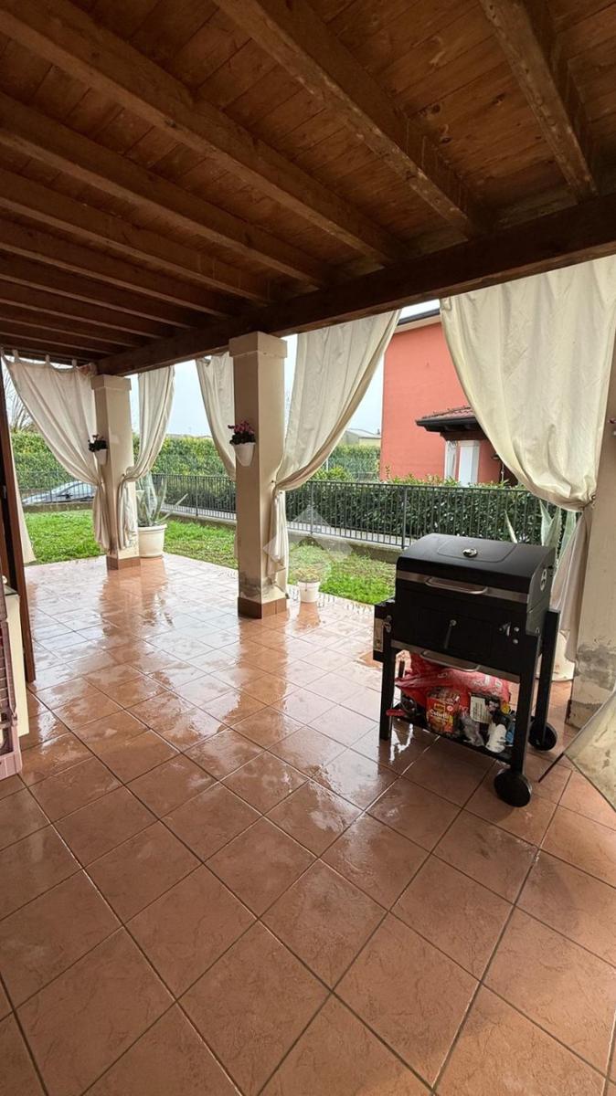 L'esterno si sviluppa sui tre lati liberi dell'immobile e presenta un grazioso portico e un'ampia area di prato verde.