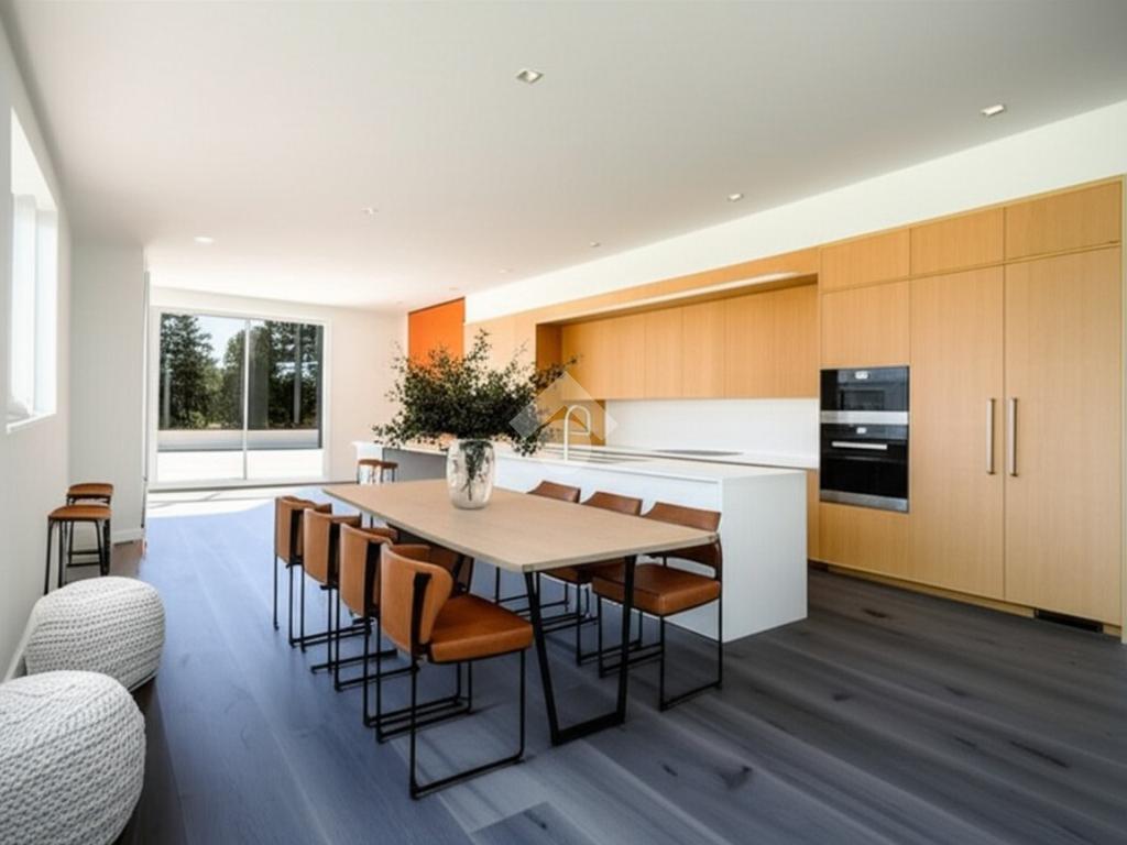 Il progetto prevede una spaziosa zona giorno open space con angolo cottura a vista che accede al balcone tramite grandi porta finestre a vetrata.