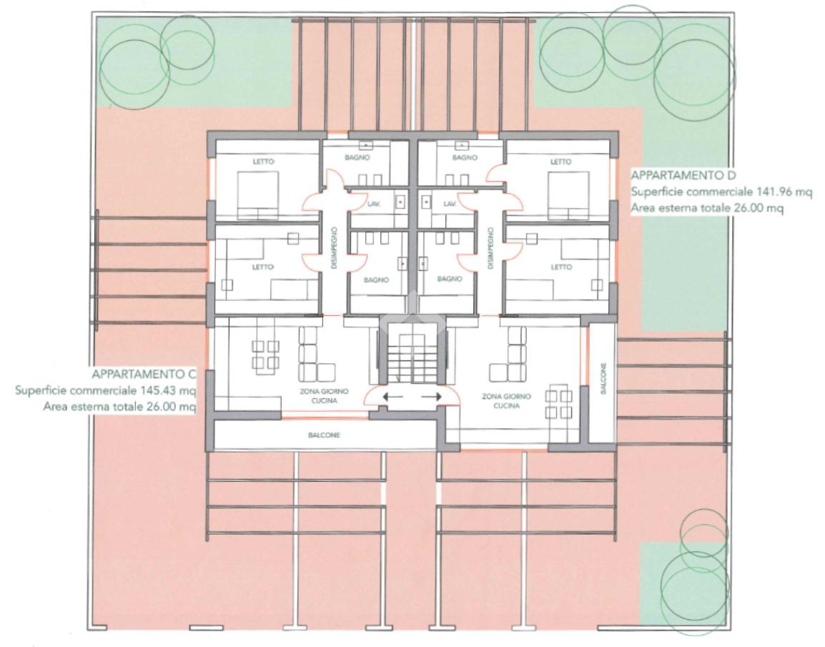 Nella zona notte saranno presenti due camere matrimoniali, doppi servizi e una comoda lavanderia separata.