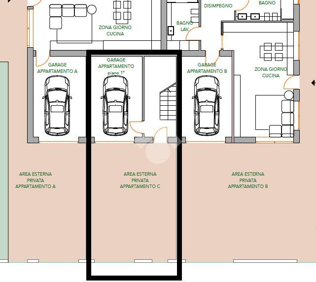 Al piano strada, si aggiunge un'autorimessa singola di proprietà con accesso carraio indipendente, area cortiva antistante e collegamento diretto al vano scala.