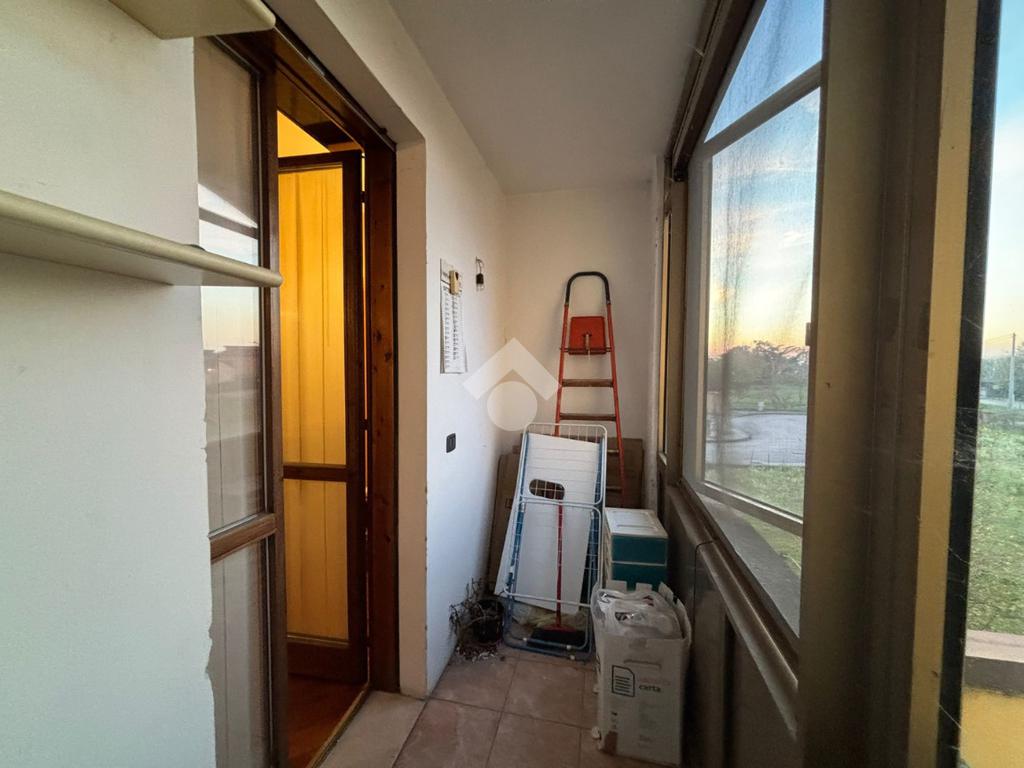 L'immobile è posto al primo piano senza ascensore e si compone di ingresso e soggiorno con angolo cottura a vista, un servizio con vasca e una camera da letto matrimoniale con balcone verandato.