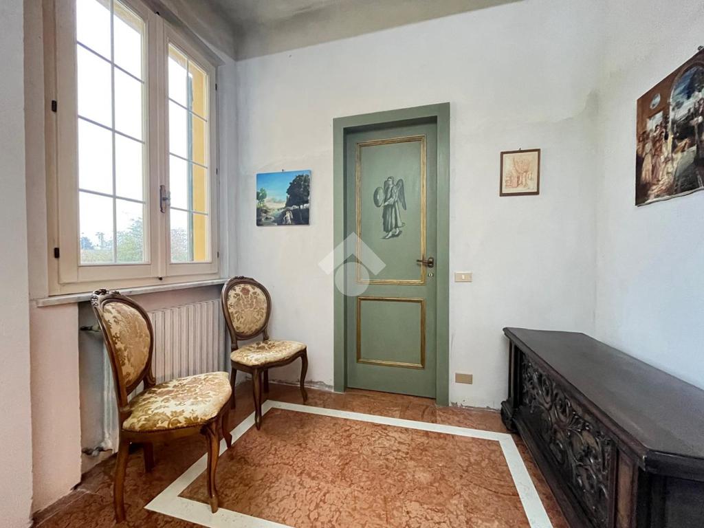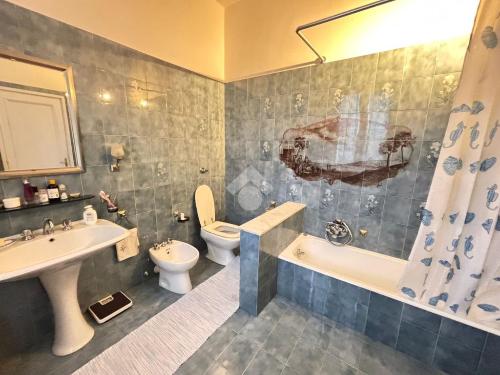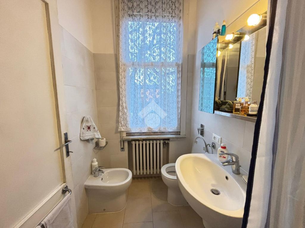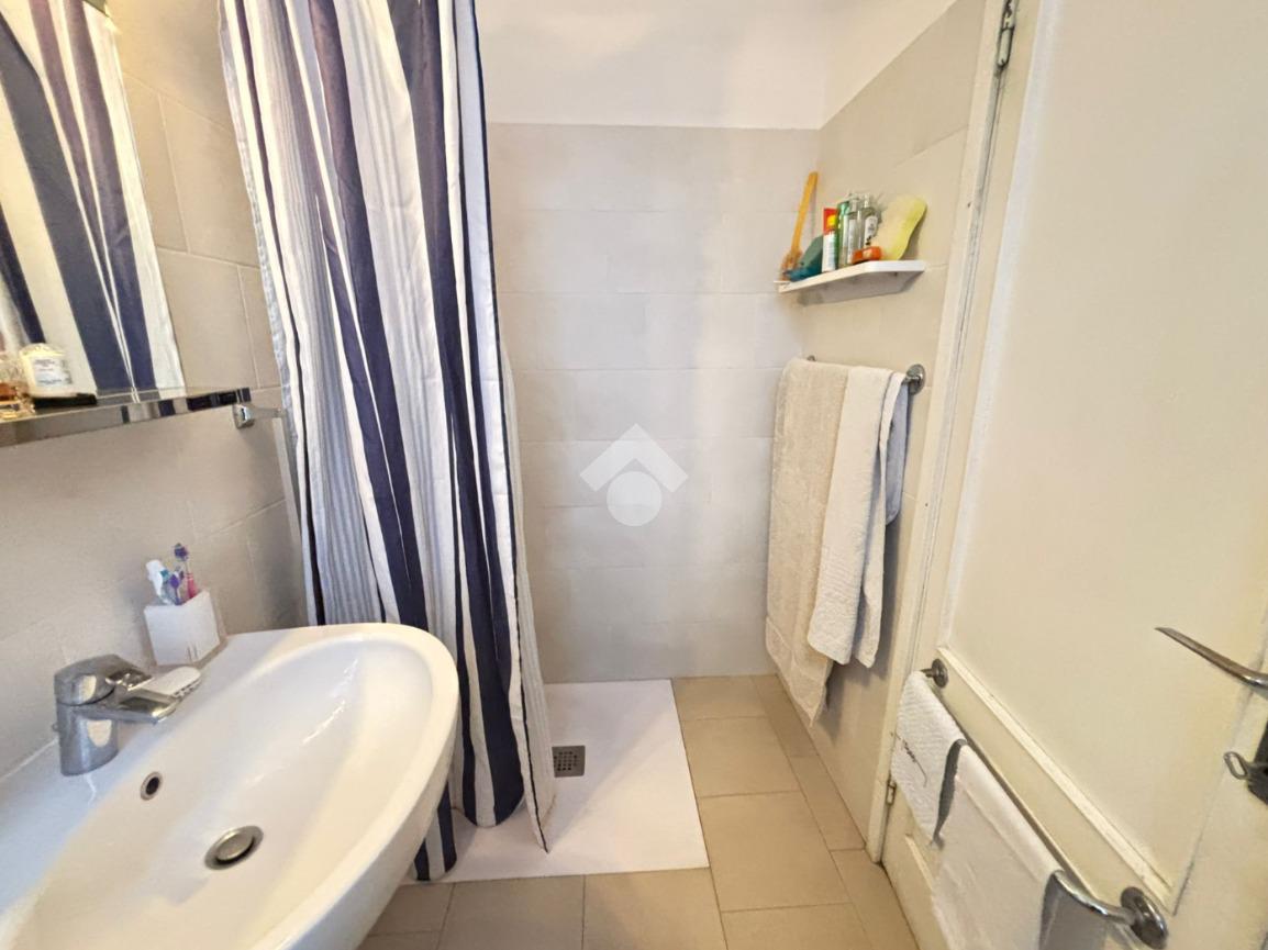 Restando a questo piano, in senso orario si trovano disposti uno studio, un ampio ripostiglio al grezzo, il collegamento diretto all'autorimessa, di 44 mq con una cantina, e l'accesso al disbrigo. Quest'ultimo, a sua volta, permette di entrare nella prima camera matrimoniale, nel primo bagno (ristrutturato nel 2019), con box doccia e preceduto dal suo antibagno, e in cucina.