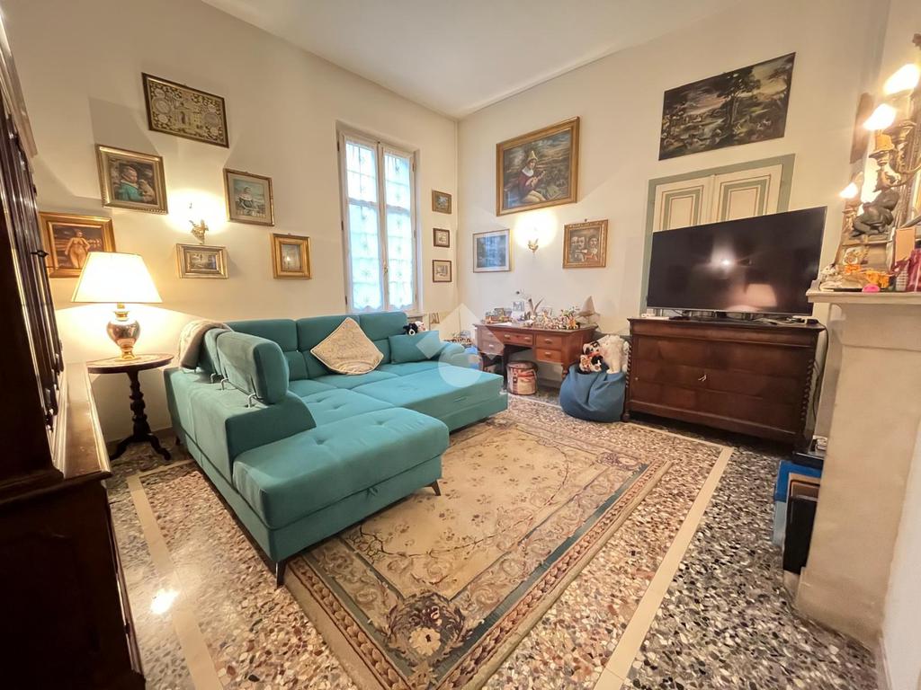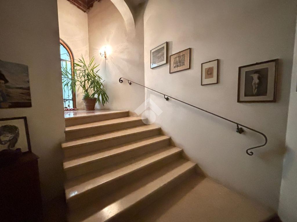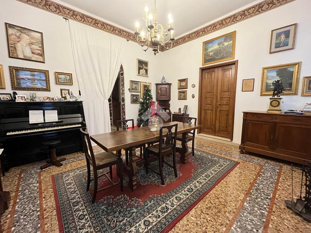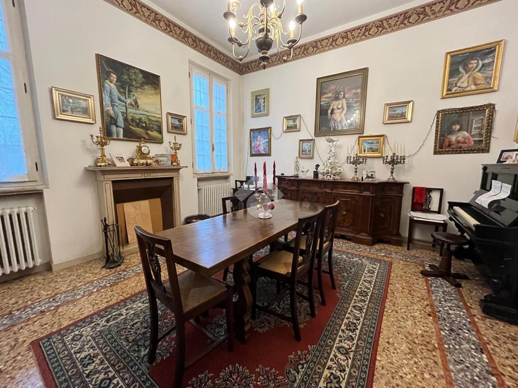 La cucina è semi abitabile ed è collegata ad un'ampia ed elegante sala da pranzo con camino, immediatamente attiguo si trova il soggiorno. Infine, si arriva all'imponente scala che collega al piano superiore.